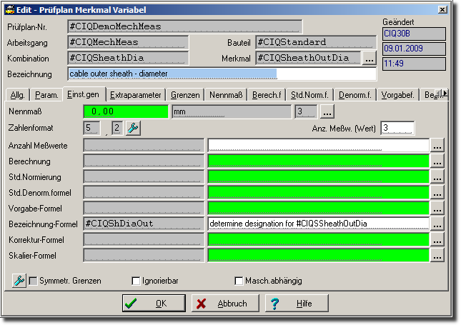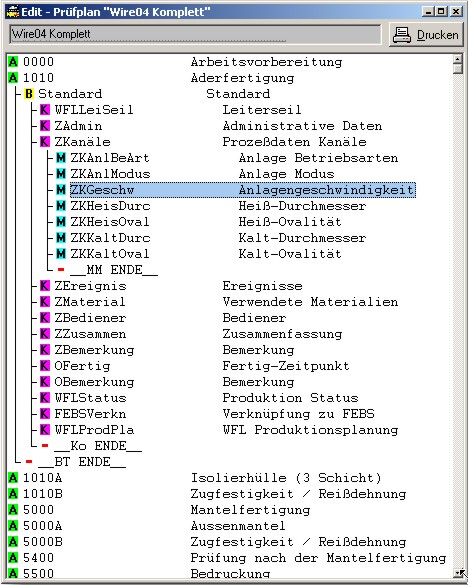 Zur Erstellung oder Veränderung von Prüfplänen sind erweiterbare Stammdaten für Arbeitsgänge, Bauteile, Kombinationen und Merkmale verfügbar. Alle Parameter, Grenzwerte, Formeln, Stammdaten, Reporte, Regelkarten usw. können vom Anwender selbst definiert und verändert werden. In die Prüfpläne können Prüfanweisungen und Zeichnungen für das Bedienpersonal an der Produktionslinie eingefügt werden.