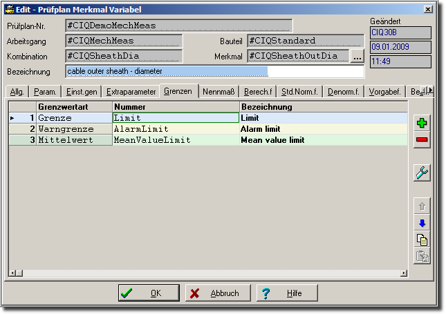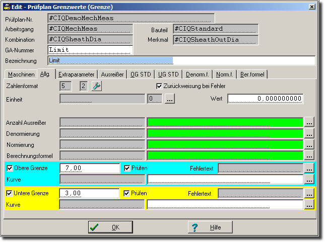 Beim Einsatz mehrerer ähnlicher Maschinen in einem Arbeitsgang können die Parameter und Grenzwerte der Prüfungen für jede Maschine individuell festgelegt werden.