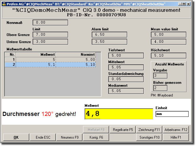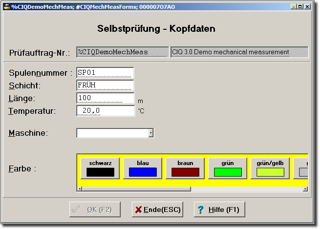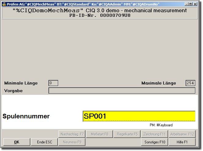 Beim Bearbeiten der Prüfaufträge werden alle relevanten Daten wie Prüfauftragsnummer, Proben-ID-Nummer, Anzahl Werte oder Grenzen kontinuierlich auf Bildschirmmasken dargestellt. Dies gilt auch für die Masken, bei denen Eingaben von einer Tastatur – wie zum Beispiel bei einer Spulennummer oder Farbe – erforderlich sind. Zudem wird der Anwender an der Produktionslinie durch Arbeitsanweisungen und Zeichnungen unterstützt.